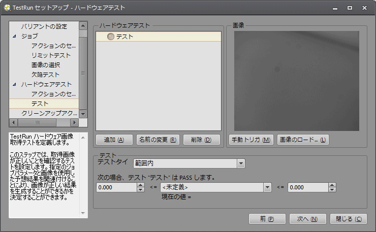 TestRun ビジョンシステムの画像取り込みテストの定義