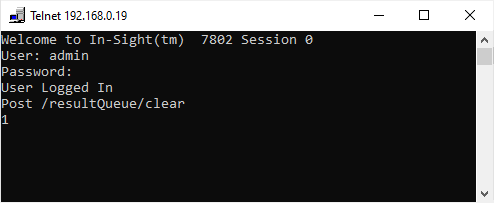 The vision system responds with a status code (1), indicating the command was successfully executed.