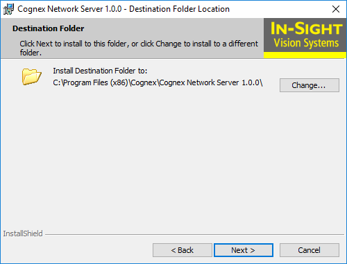 Click Next to install the Cognex Network Server to the default location C:\Program Files (x86)\Cognex\Cognex Network Server x.x.x