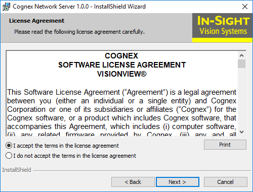 - Run the Cognex Network Server installer you just downloaded.