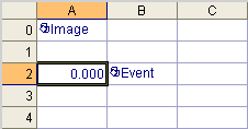 Click OK to accept the default property sheet settings. An Event function, with the Trigger parameter set to Online/Offline, is automatically inserted into the adjacent cell. Cell A2 returns 0.000 indicating that the sensor is Offline.