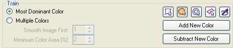 • Most Dominant Color: Specifies that one Color within the defined Color Model is trained, and will be added or subtracted from the Color Model, depending on which button is pressed (Add New Color/Subtract New Color).