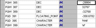 These values are in the string format. In the ProfibusGateway.cxd file, the BGetInt function in cell D22 reads the binary value at Byte 19 (the lower byte of the word read).