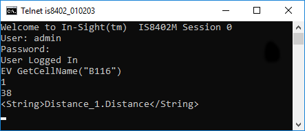 The In-Sight sensor returns 1 to indicate that the command was executed successfully. The number of characters (in bytes) is followed by the cell location.