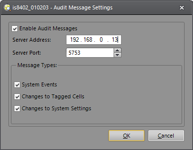 Server Port: Specifies the TCP/IP port of the audit message server. (Default = 5753)