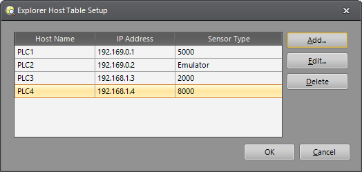 Explorer Host Table Setup Dialog