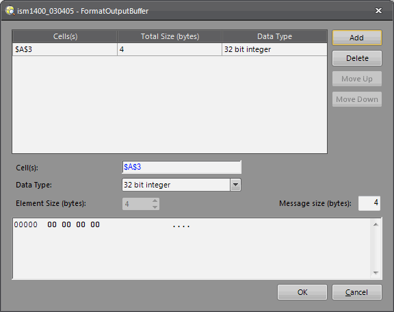The FormatInputBuffer and FormatOutputBuffer dialogs are used to automatically configure data for the FormatInputBuffer and FormatOutputBuffer functions, and return a Buffer structure containing the formatted data. For more information, see FormatInputBuffer and FormatOutputBuffer.