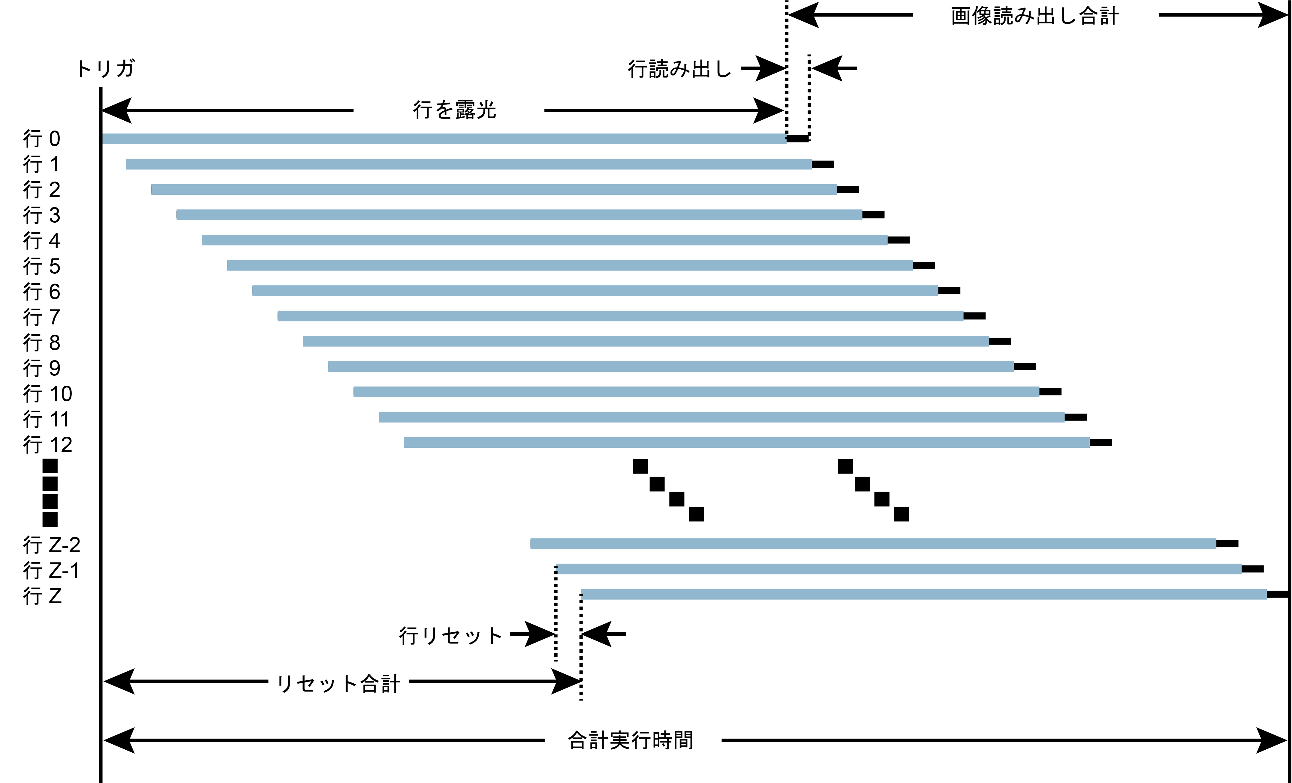 Total Image Readout (全画像読み出し) (Row Readout (行の読み出し) x 行数) + 360µ 秒