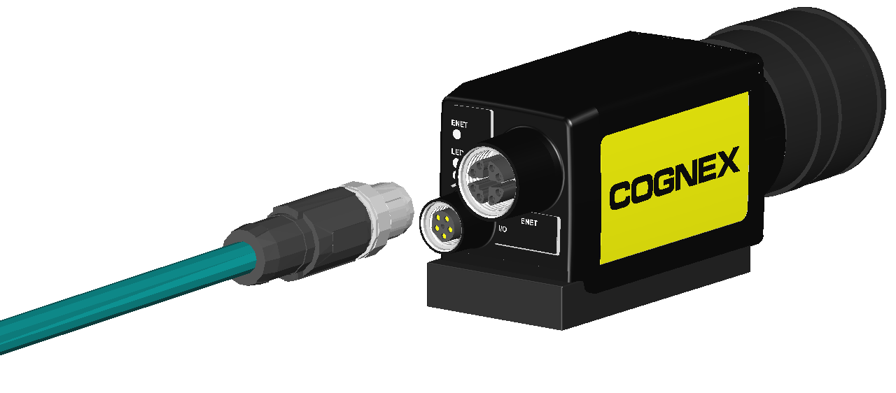 The vision system’s ENET connector provides the Ethernet connection for network communications and supplies power to the vision system.