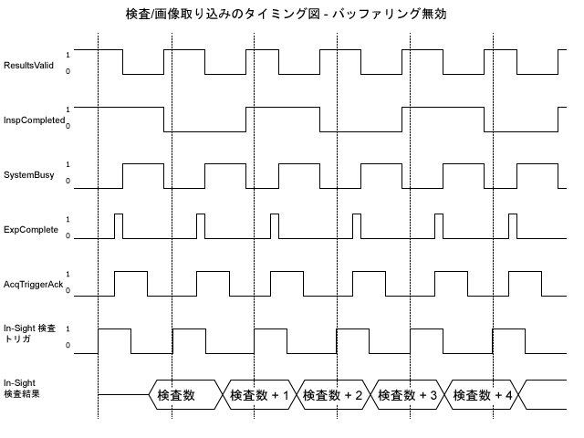 PROFINET での画像取り込みと検査のタイミング図 (バッファリング無効)