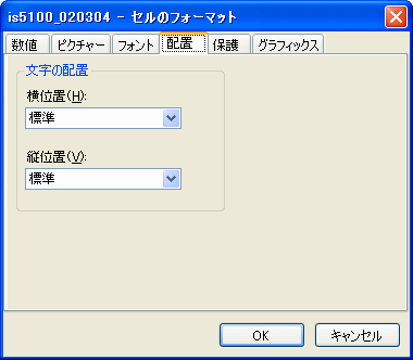 [配置] タブをクリックして、セル内のデータの横位置を、左詰め中央揃え右詰めに設定します。また、データの縦位置を、上詰め中央揃え下詰めに設定します。デフォルトの配置に戻すには標準を選択します。