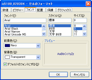 [フォント] タブをクリックして、フォント、スタイル (標準斜体太字太字斜体)、サイズ (872 ポイント)、文字の色 (前景色) とセルの色 (背景色) を選択します。