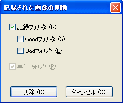 [Good/Bad フォルダのクリア]: [記録された画像の削除] ダイアログが開かれます。このダイアログでは、記録フォルダ、Good フォルダ、および Bad フォルダから画像を削除することができます。