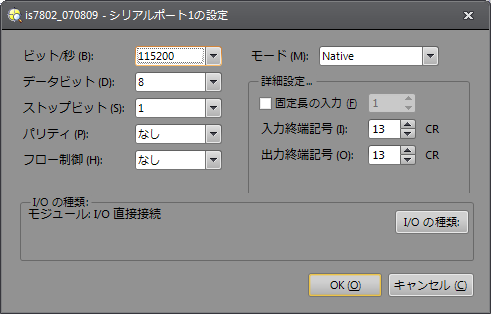 [シリアルポートの設定] ダイアログ