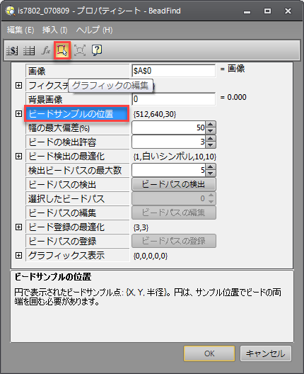3. [ビードサンプルの位置] を選択して [グラフィックスの編集] ボタンをクリックします。