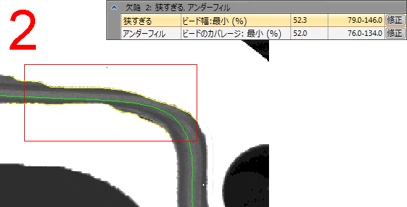 ビードのセクションに適用された素材が少なすぎる場合のアンダーフィルの欠陥を検査するために使用されます。