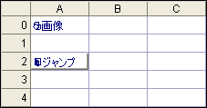 「Jump」というラベルが付いたリンクコントロールがセル A2 に表示されています。