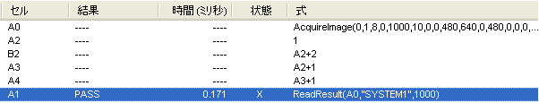 ほとんどのビジョンツール関数は、セル A0 の AcquireImage 関数に直接または間接的に依存します。新しい画像が取り込まれるたびに、これらの関数が実行され、新しい値を返します。また、画像の取り込み、またはほかのスプレッドシートイベントトリガされると、スプレッドシートは更新されます。