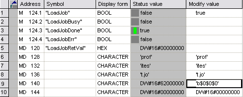In the MD 128 - MD 147 entries of the Variable Table, enter the name of a job to be loaded; a null character ($0) must be entered after the last character of the job name.