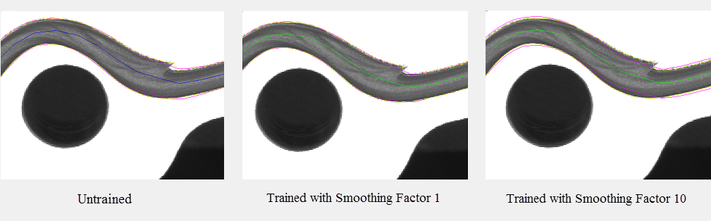 Specifies how much influence uneven edges will have on the best fit line for the trained bead path (1 - 10; default = 3). Use a higher value to make the best fit bead path less sensitive to variations such as spikes along the edges of the bead. Use a lower value when the bead edges are very smooth.