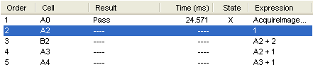 As with other conventional spreadsheets, the execution order of the cells in the In-Sight spreadsheet is dynamically determined by the relationship and dependencies between cell functions. The In-Sight spreadsheet determines the order of cell execution primarily by evaluating cells according to their dependencies, and secondarily by their locations within the spreadsheet.