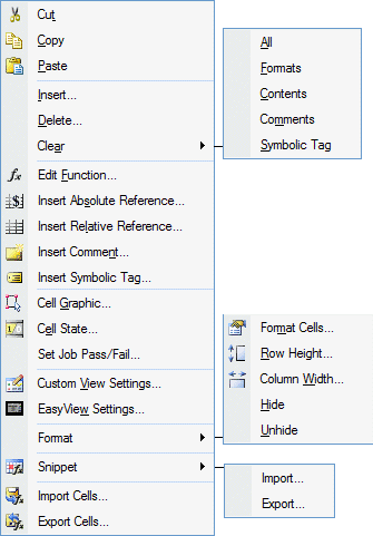 - Insert Symbolic Tag: Opens the Symbolic Tag Editor to insert a new symbolic tag for the active cell. This option is available only if the active cell does not contain a symbolic tag.