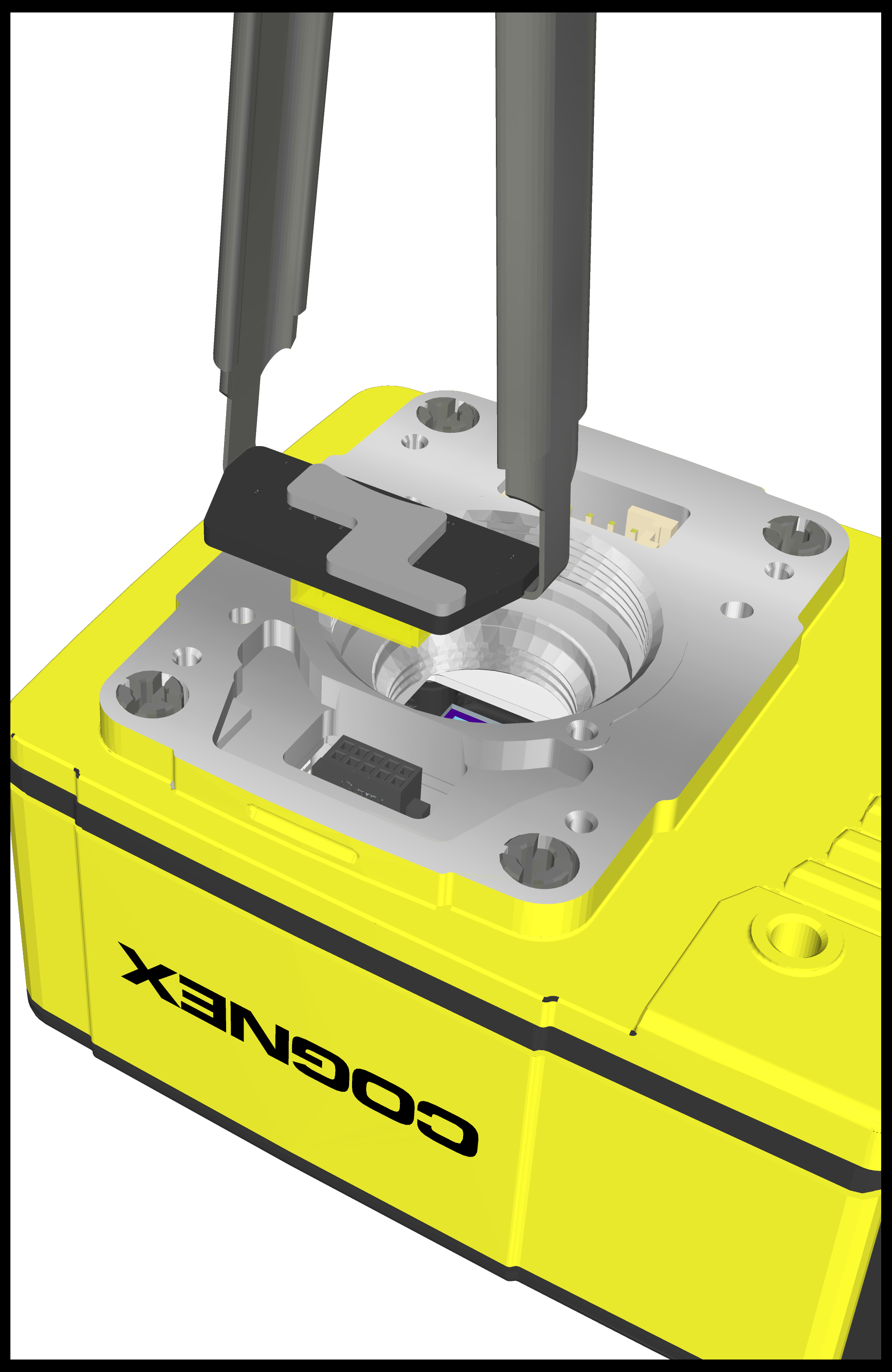 The vision system faceplate includes two lift points on either side of the PCB. Position an insulated extractor tool (for example, Jonard Tools S-340 DIP/IC Extractor) under the edges of the PCB.