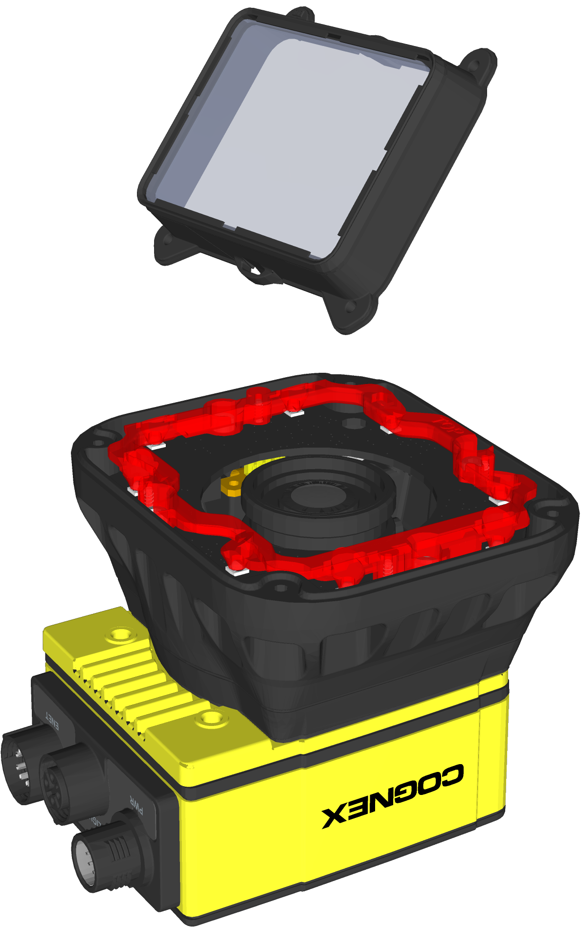 Note: This step includes an optional bandpass filter accessory installed to the light baffle. For more information, refer to In-Sight Lenses, Lights and Covers.