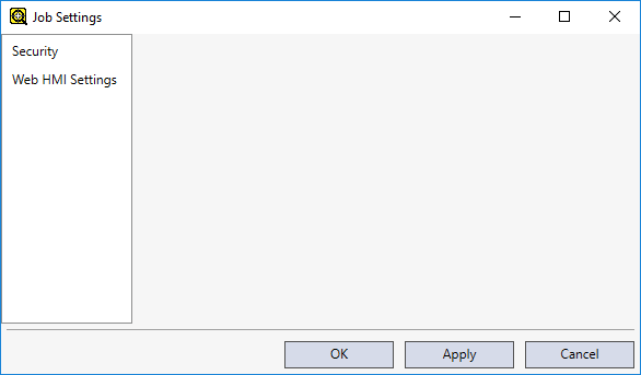 The Job Settings dialog is used to setup settings for the In-Sight vision system while online, to configure security for accessing a job, and configure WebPage authentication and timeout settings.