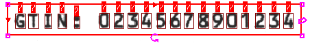 The line of text within the ROI is split into images of the individual characters, and each character is enclosed within a non-editable character rectangle. The ROI defines the approximate location, angle and skew of the line of text. The Angle Range and Skew Range parameters on the Segmentation tab can be used to compensate for variations, if necessary.