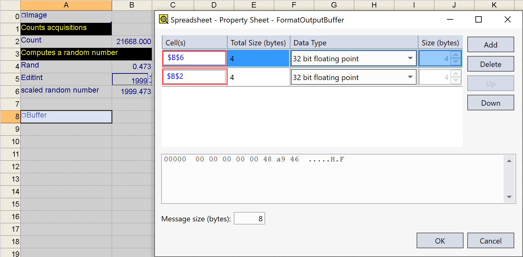 From the FormatOutputBuffer dialog, click on the Add button again. This will initiate cell selection mode; select the cell with the Count function.