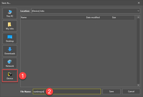 Select Device and save the runtime job on the selected In-Sight D900 series vision system.