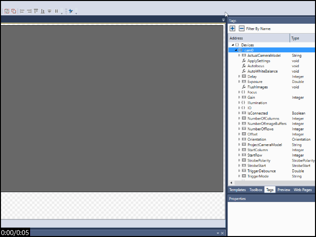 Simply drag-and-drop the tags from the Tags Window (published tags are in the Devices > cam0 category) onto the WebPage.