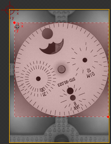 The orange outline encompasses the entire image, and the red-dashed rectangle is the ROI that is being defined. |