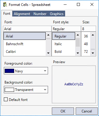 Click the Font tab to select the font, the font style, the font size, the Foreground color (color of the text) and the Background color (color of the cell).