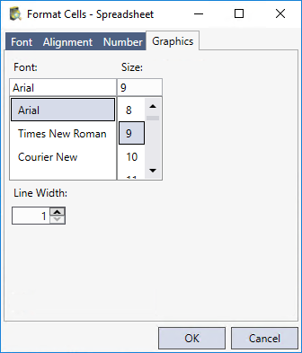 - Line Width: Formats the line width (measured in pixels) for cell graphics. All graphics associated with the formatted cell(s) will use the same line width. (1 - 10; default = 1)