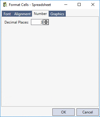 Click the Number tab to set the decimal place values of the numeric values in cells from 0 to 6 places. The default setting is 3.