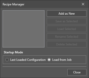 - You can load and save recipes containing ViDi tools with the Recipe Manager dialog.