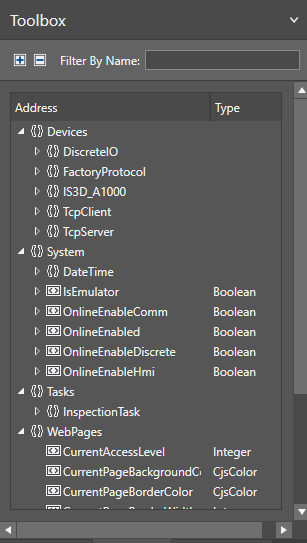 The Toolbox is a context sensitive window of the Job Browser, listing the various tools and resources that are available for use in the Spreadsheet Editor, the Web Page Editor and the Script Editor. The Toolbox is populated with various tools in a context sensitive manner, based on which editor is selected. You can simply drag-and-drop items from the Toolbox into their respective editors.