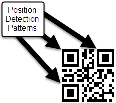 2D QR Symbols: For QR symbols, the finder pattern points are centered on each of the four corner cells of the symbol. The three position detection patterns on the symbol form an 'L' shape.