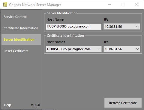 Tip:Click the Get Cognex Network Server... link of the Configure Secure Connection utility to quickly open the support page.