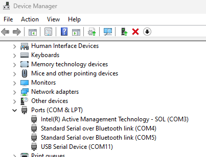 You can only use the Virtual COM in Text and Native Mode. In Virtual COM mode, you can only configure the Line Terminator values. The remaining Port settings are automatically negotiated between the host and the vision system. You can view the virtual COM port you created in the Device Manager in Windows: