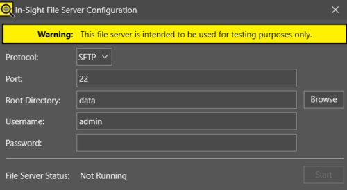In-Sight Vision Suite allows you to connect to third-party file servers.