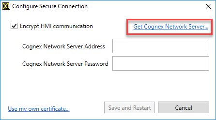 Tip:Click the Get Cognex Network Server... link of the Configure Secure Connection utility to quickly open the support page.
