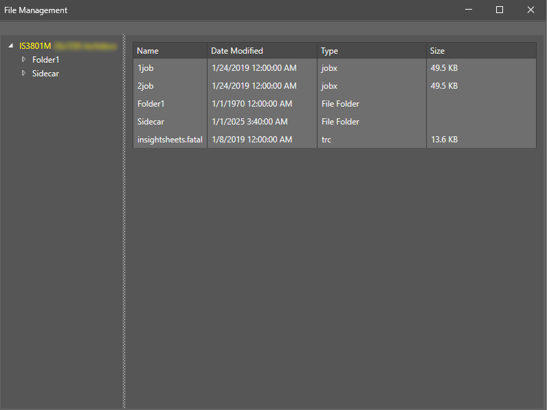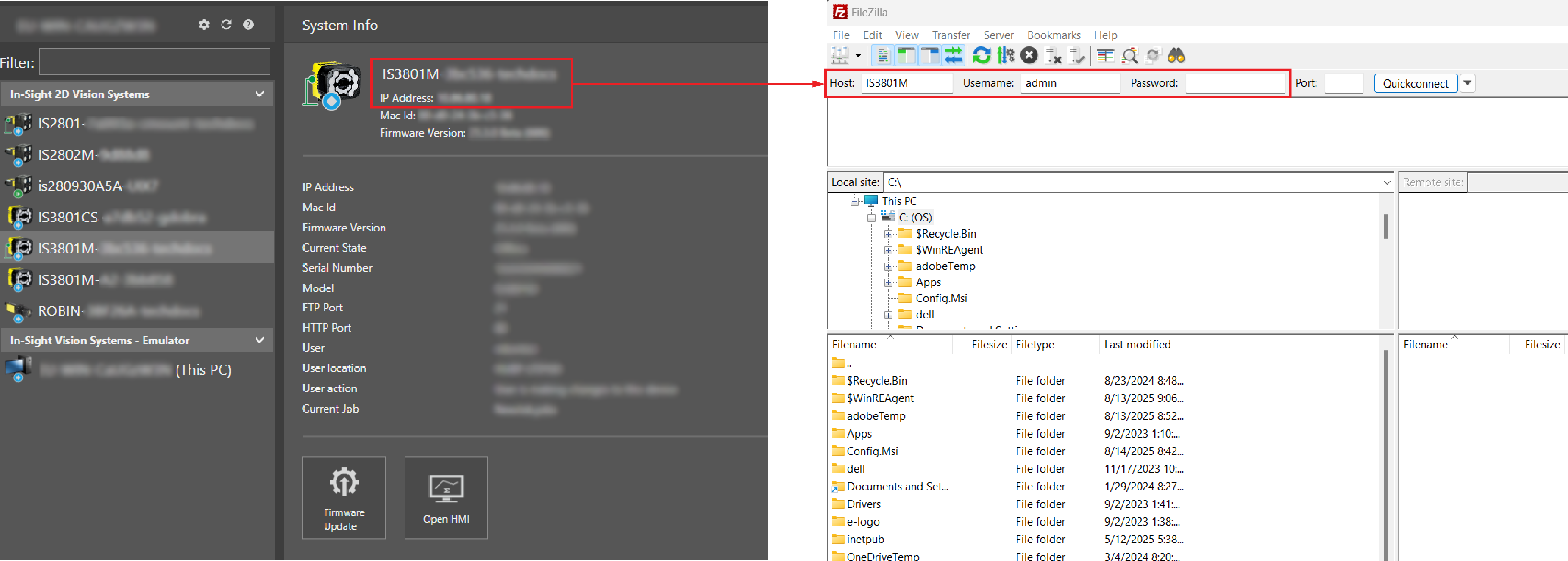 View files stored on the vision system either using The File Management utility in In-Sight Vision Suite or a third-party FTP client, such as FileZilla Client. The FTP client must support TLS 1.3.