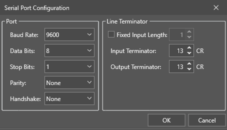 Click the Serial Configuration button to open the configuration window.