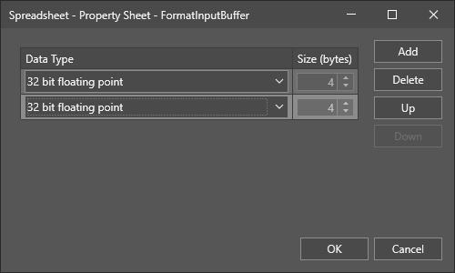 From the FormatInputBuffer dialog, click on the Add button and add two 32 bit floating point to the list.