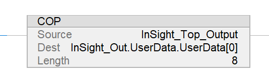 Open the Controller Tags dialog and change the values of the InSight_Top_Output.Data1 and InSight_Top_Output.Data2. After changing the InSight_Top_Out.Data1 and InSight_Top_Out.Data2 values in the PLC, set the SetUserData bit in the PLC and wait for the SetUserDataAck bit to be set and then clear the SetUserData bit. Once the ReadUserDataBuffer cell runs in the spreadsheet, the values are updated in the spreadsheet.