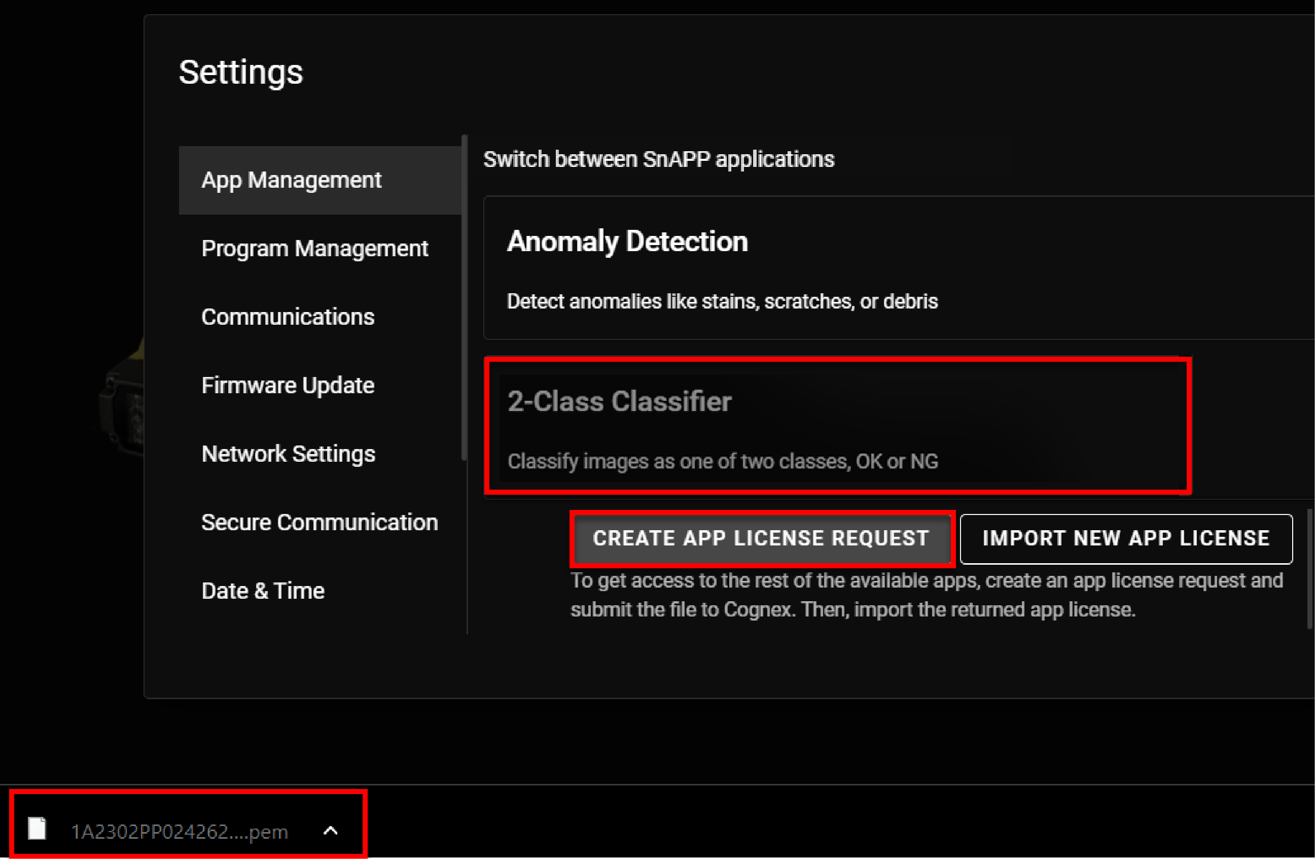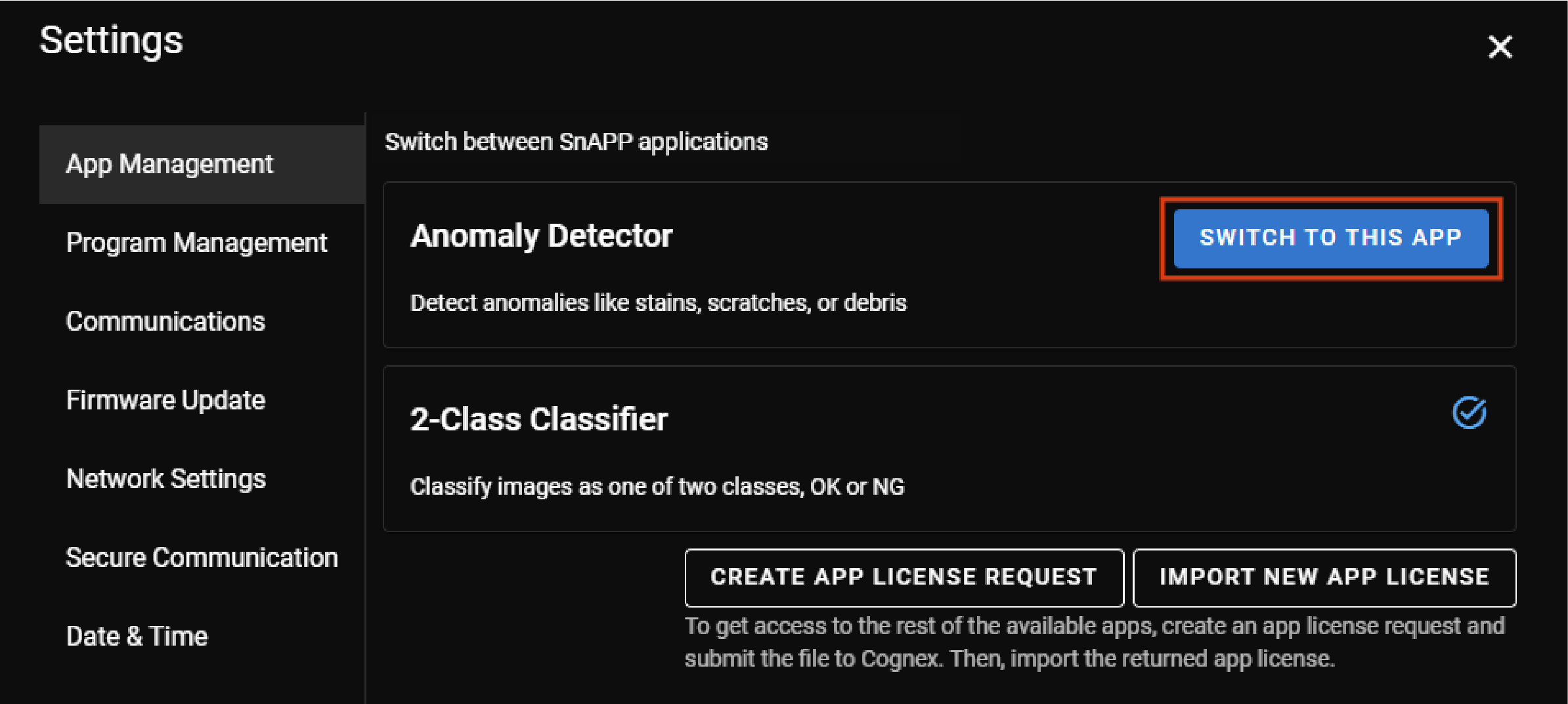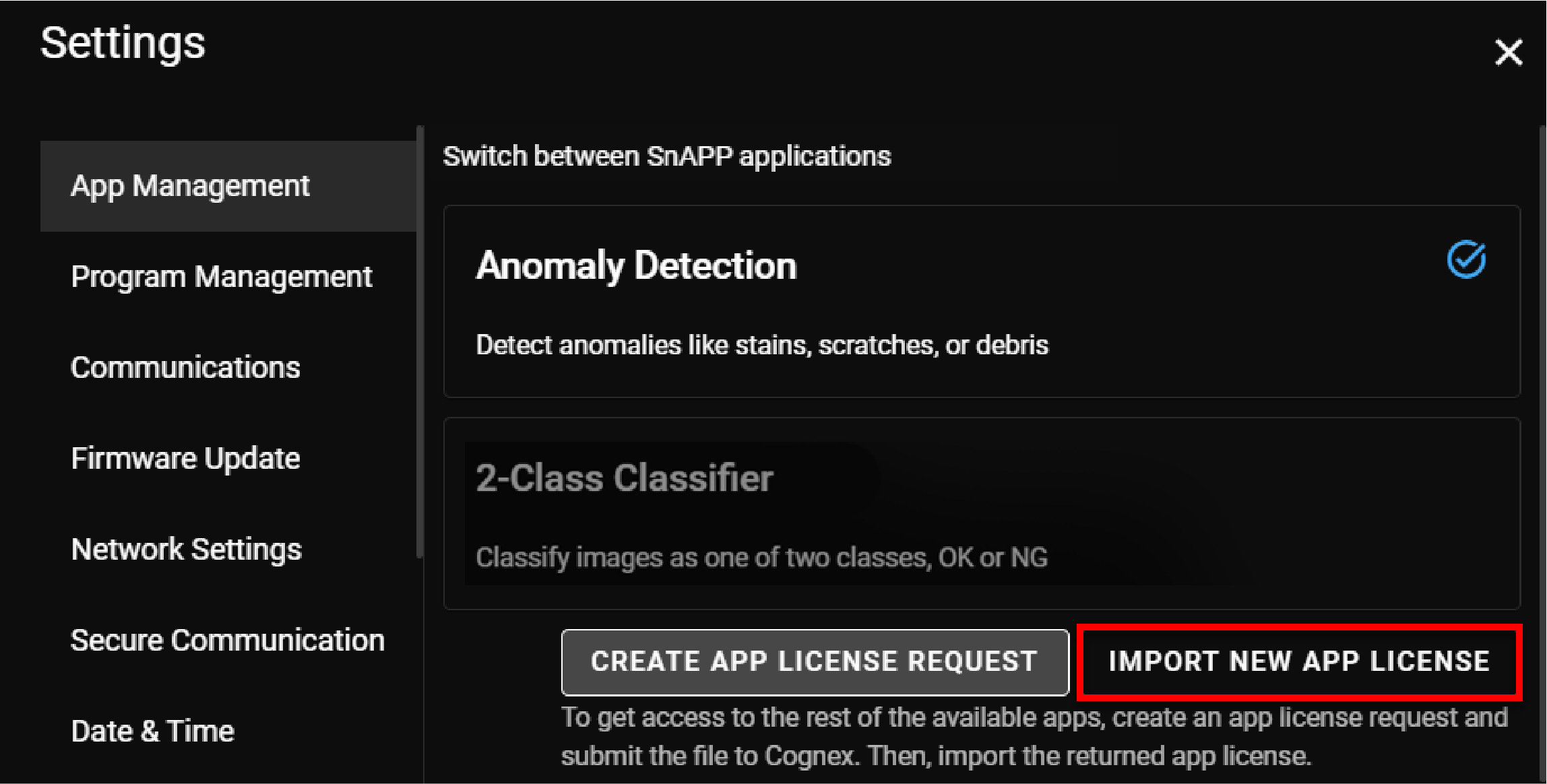 Contact your local Cognex Sales Engineer to process the App License Request.