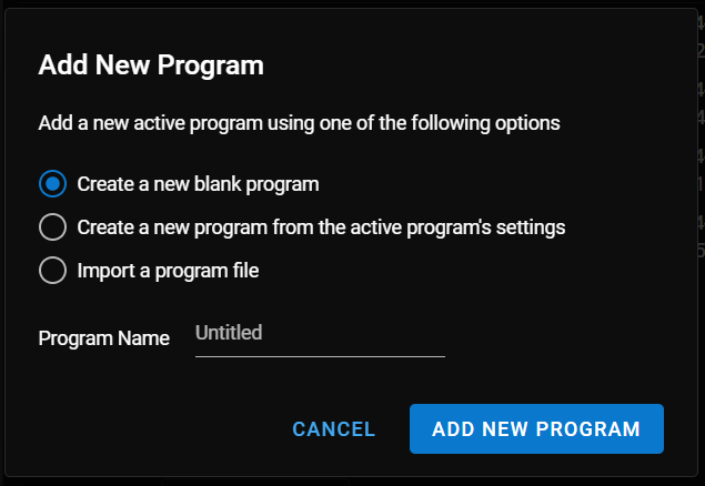 You can create a new program by clicking + Program and choosing an Add New Program option: